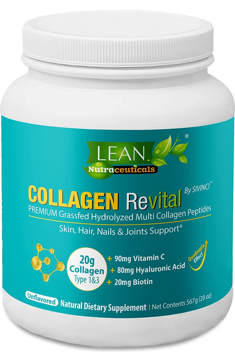 Amazon Com Lean Nutraceuticals Collagen Peptides Powder 20 Grams With Biotin Hyaluronic Acid And Vitamin C Hair Skin And Nail Supplements For Women And Men Promote Hair Thickening And Growth